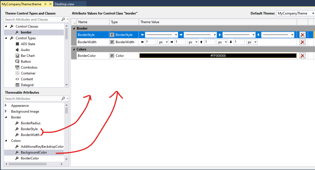 So first let’s open Themes and have a look what are the available options here. In Solution Explorer navigate to your HMI project -> Themes -> Select theme you want to edit.